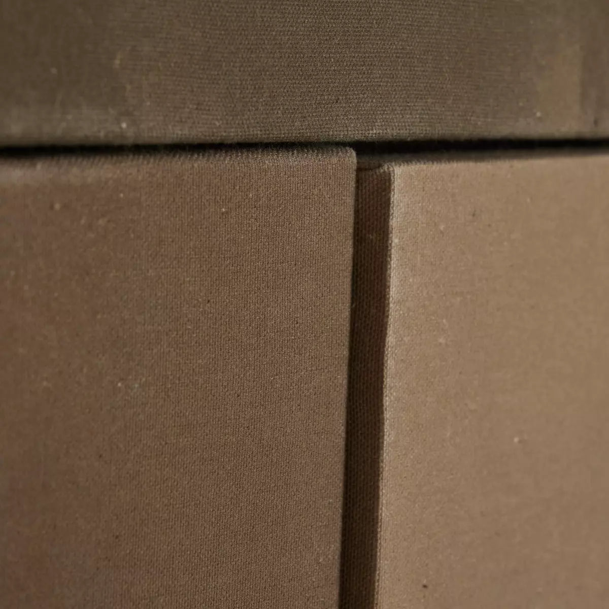 Three separate raw canvases are printed in inky watercolor tones, then wrapped on individual stretcher bars and mounted at varying depths. Framed together within a vertical grain white oak floater for a dimensional effect.