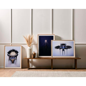 Coined "the most famous artist you've never heard of" by Texas Monthly, late artist Boyd Elder’s work can be seen on album covers by such iconic groups as the Eagles. From his series "American Fetish - RIP," this photograph of a painted and embellished animal skull is printed on photo paper and framed within vertical grain white oak for a museum-quality look. Handmade in Austin, Texas, each print includes a certificate of authenticity and artist biography.