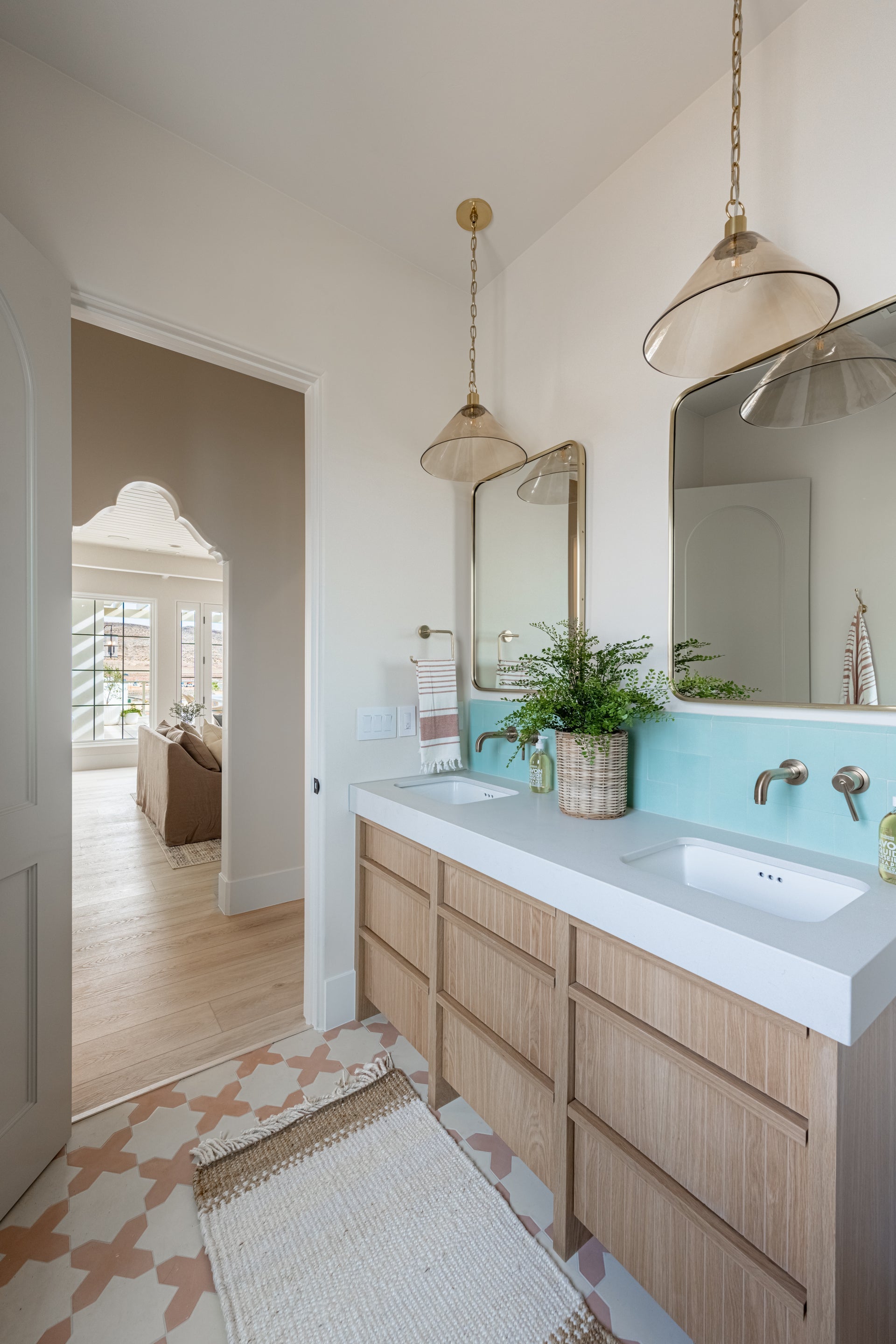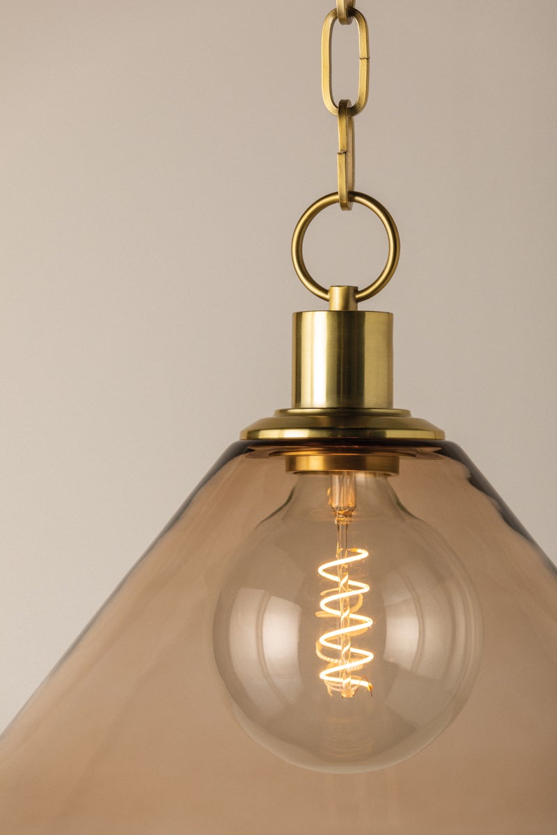 In the spirit of dusk, this serene pendant sets the mood for intimate conversations. The dusty rose-colored glass and Aged Brass cap and chain evoke a vintage feel, while the sharply tapered shade feels sleek and contemporary. In either of the two available sizes, it is an irresistible addition to your home or hallway. Part of THELIFESTYLEDCO® collection.