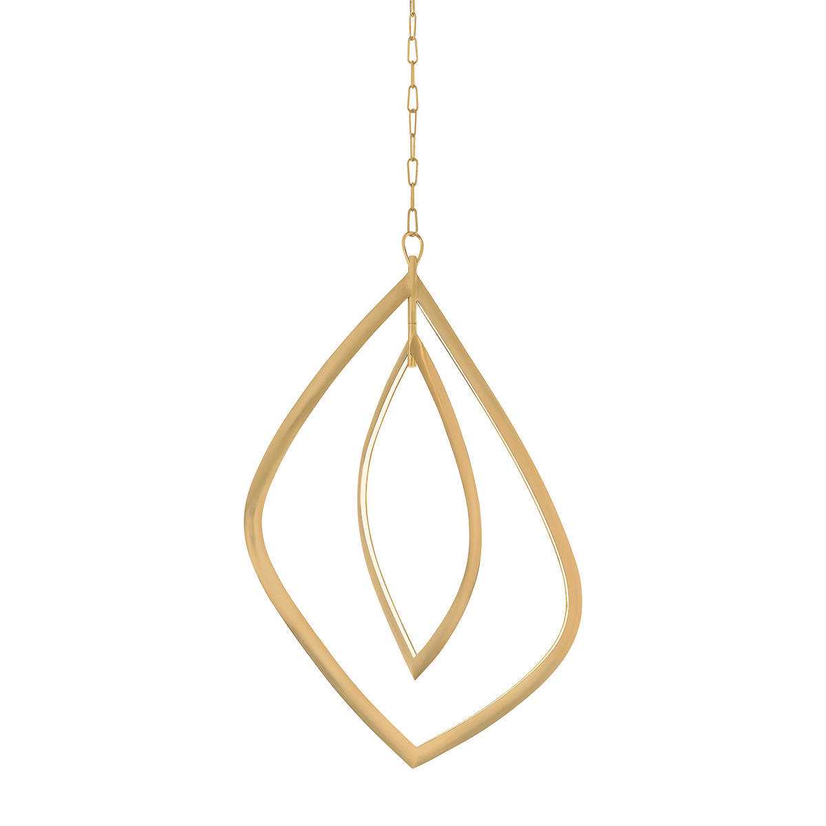The natural world meets the precision of modern technology in the Arles chandelier. The silhouette is organic and fluid with curving metalwork reminiscent of jewelry. Within the two sculptural rings, thin LED bands emit a gentle glow. Available in two sizes and finished in Vintage Brass, Arles blurs the line between art and design.