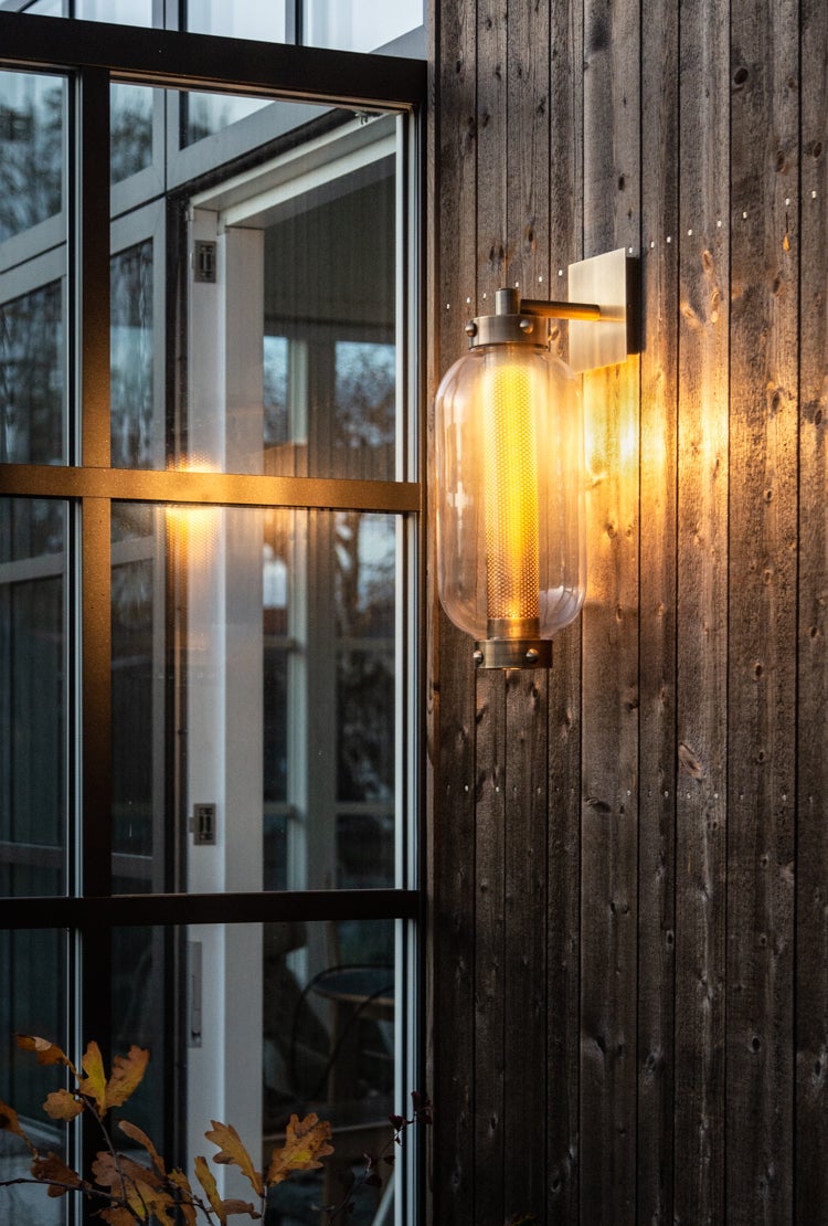 Atwater is simply stunning. Light peeks through the perforations creating a glow that is both soft and striking. The exposed hardware and Patina Brass finish give this industrial-style exterior wall sconce a bit of a nautical vibe, making it usable in outdoor coastal settings as well.
