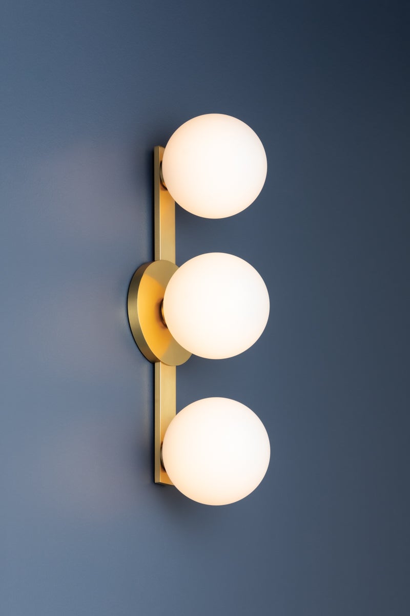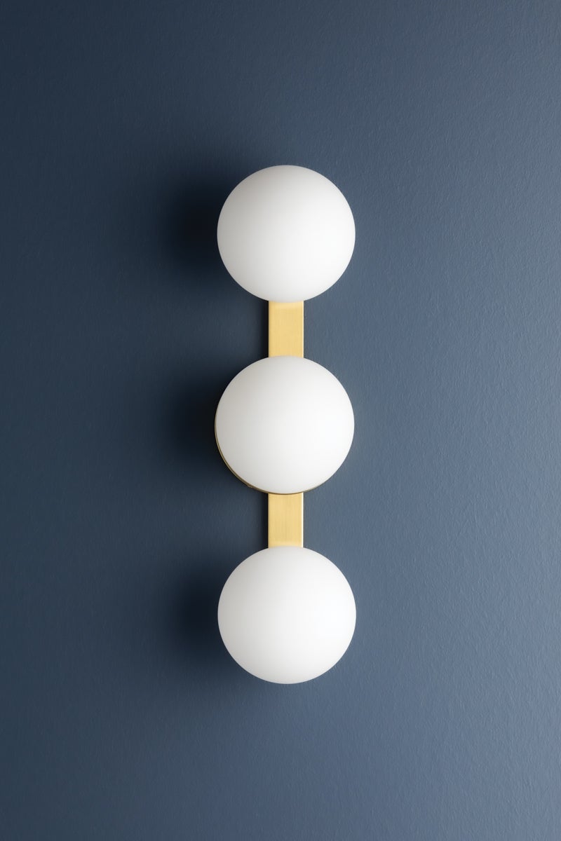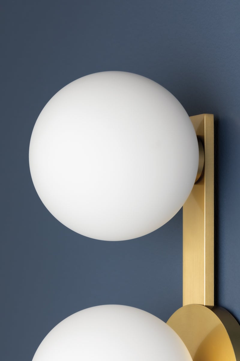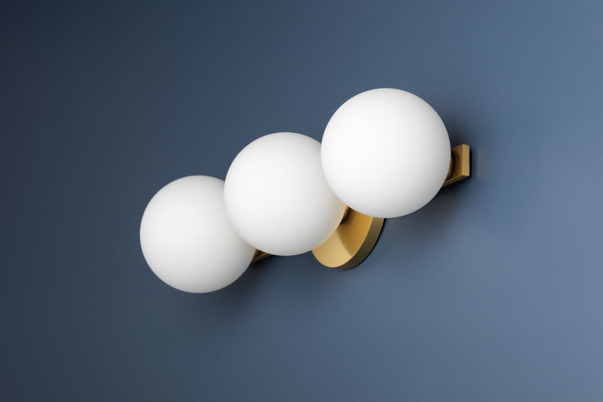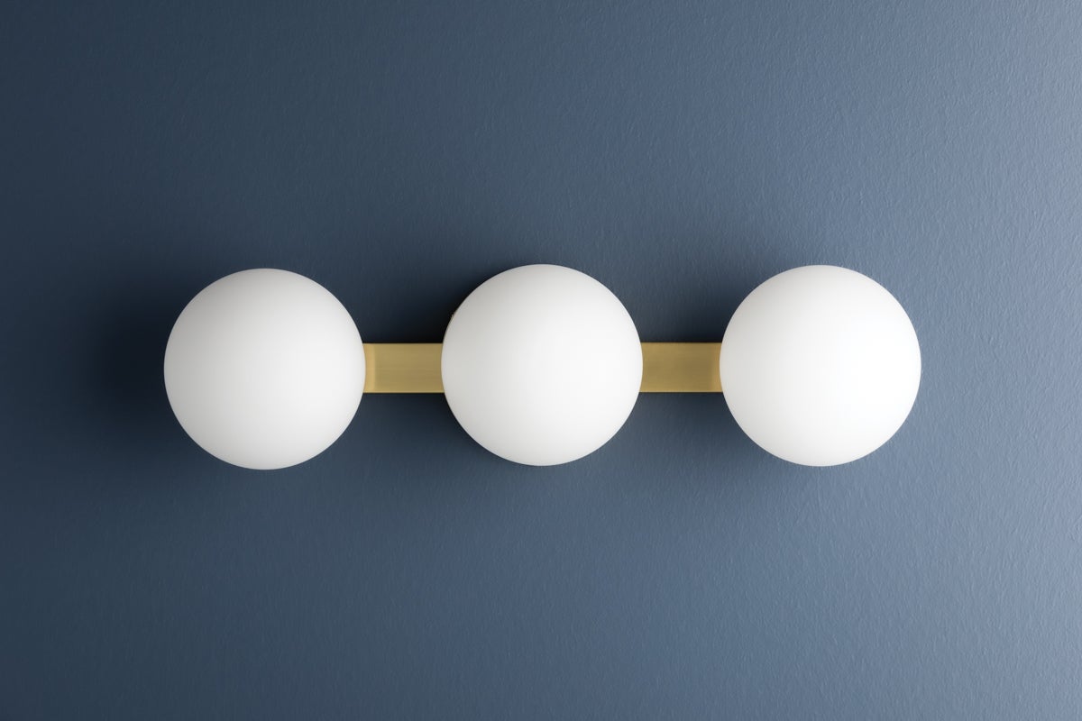 Scandinavian minimalist design principles are met with upscale finishes in the Baird family. A graphic circular metal backplate frames each oversized glass orb, creating modern silhouettes for a bath or powder room. Designed for versatility, Baird can be wall or ceiling-mounted with one to four light options available. The LED-lit shades diffuse the bright task lighting while reflecting off the timeless Aged Brass or sleek Polished Chrome finishes.