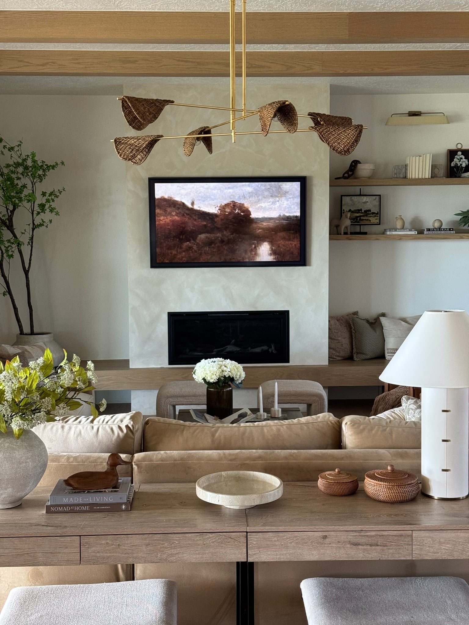 Let your imagination take flight with the dynamic artistry of Barnaby. Mimicking the elliptical wing movements of birds, each shade has been handwoven from natural abaca fibers to create an airy and sculptural centerpiece. As a point of contrast, the clean lines and right angles of the Aged Brass frame lend this mobile-inspired chandelier a pleasing sense of order.