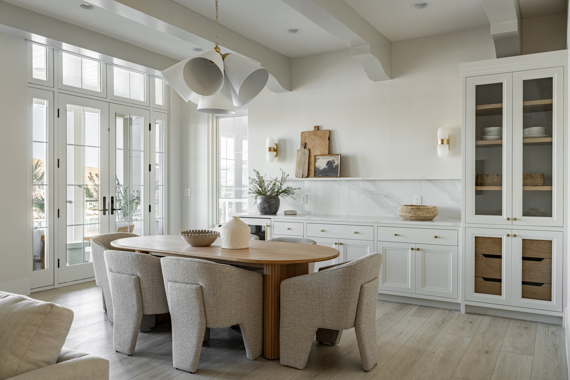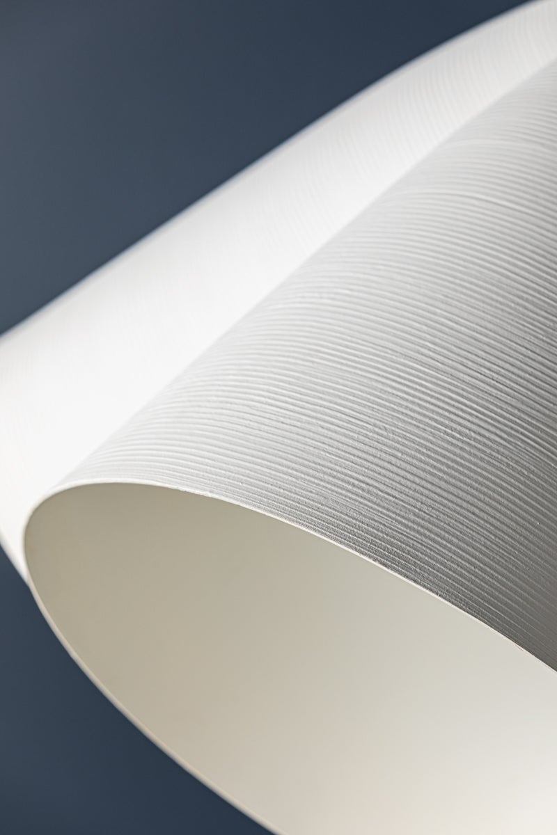 A refined bell-shaped fixture with a modern edge, Bronson features a sleek, tapered silhouette crafted from clean White Plaster. The opaque materiality and funnel shape creates a powerful downlight to fill a large area. Accented by the inviting warmth and reflective nature of Aged Brass, including a large cap and finial, it evokes an organic feel. Available as a chandelier or pendant in two sizes. Part of our Becki Owens collection.