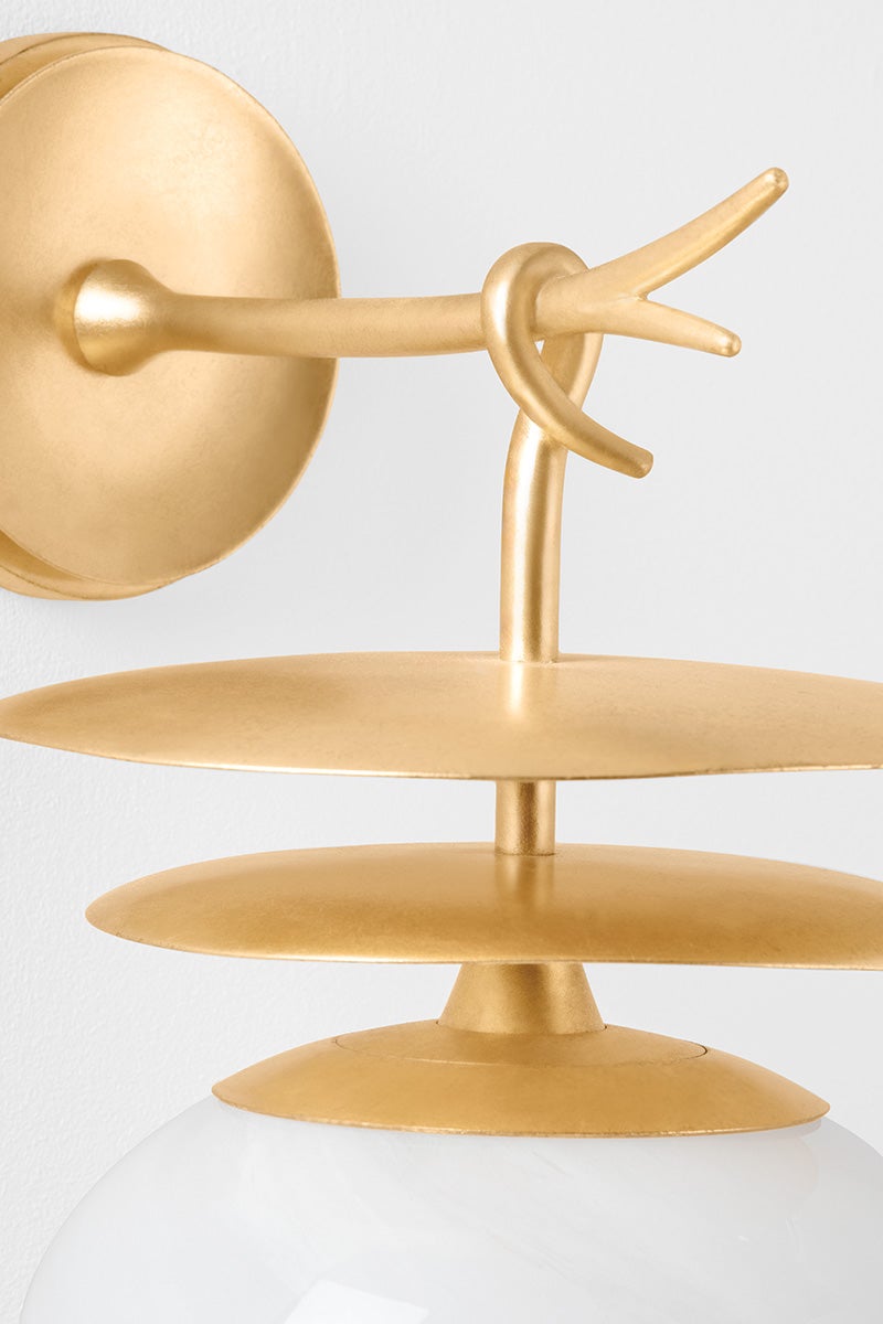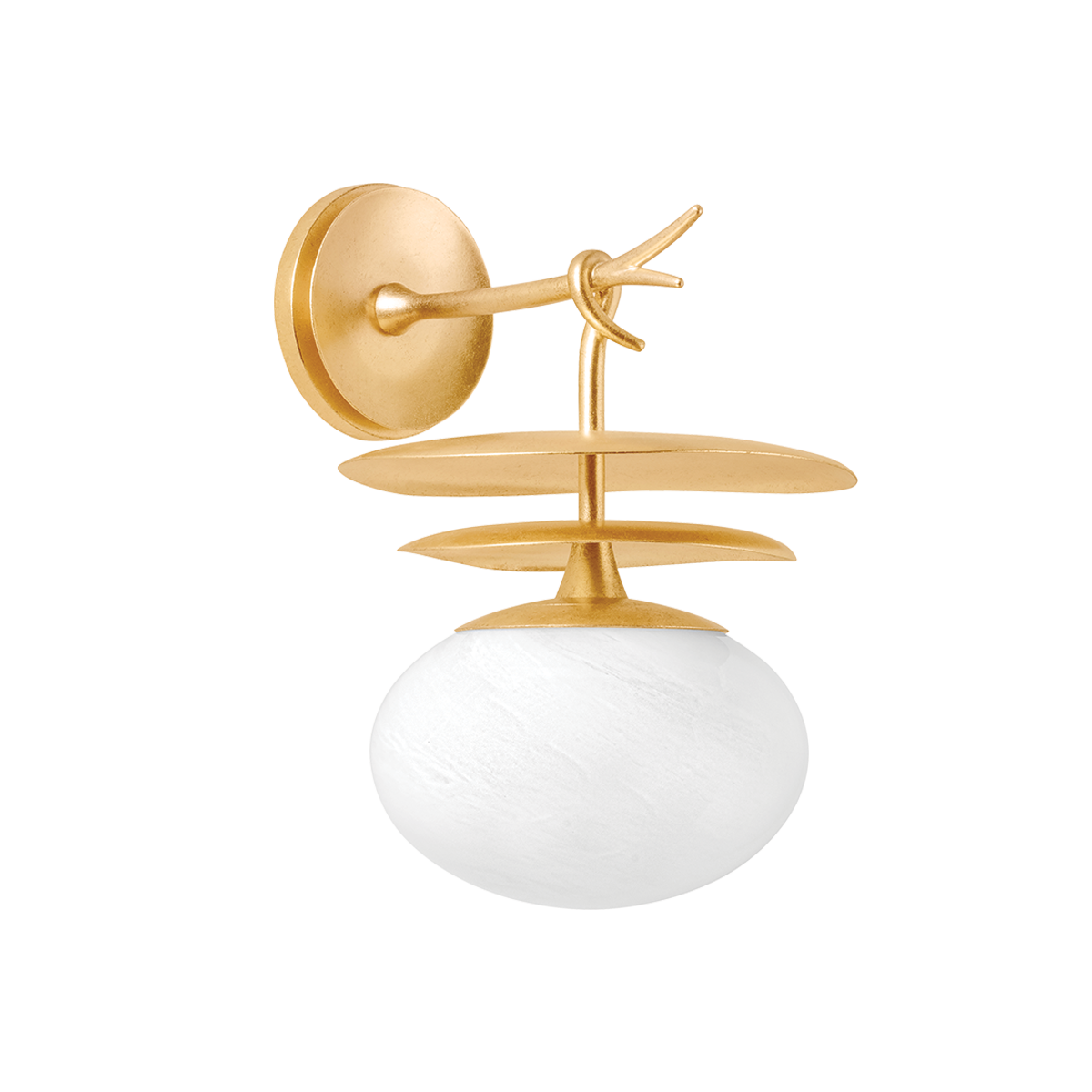 Inspired by botanical forms, this mobile chandelier balances organic shapes and delicate proportions to create a modern lighting fantasy. Stems of fluid metalwork support slender leaf-like disks. Resembling flowers in bloom, cloud glass spheres dangle gracefully from the Vintage Gold Leaf framework. Available as a 1-light sconce or 6-light pendant, Ceylon serves as a poetic representation of nature.