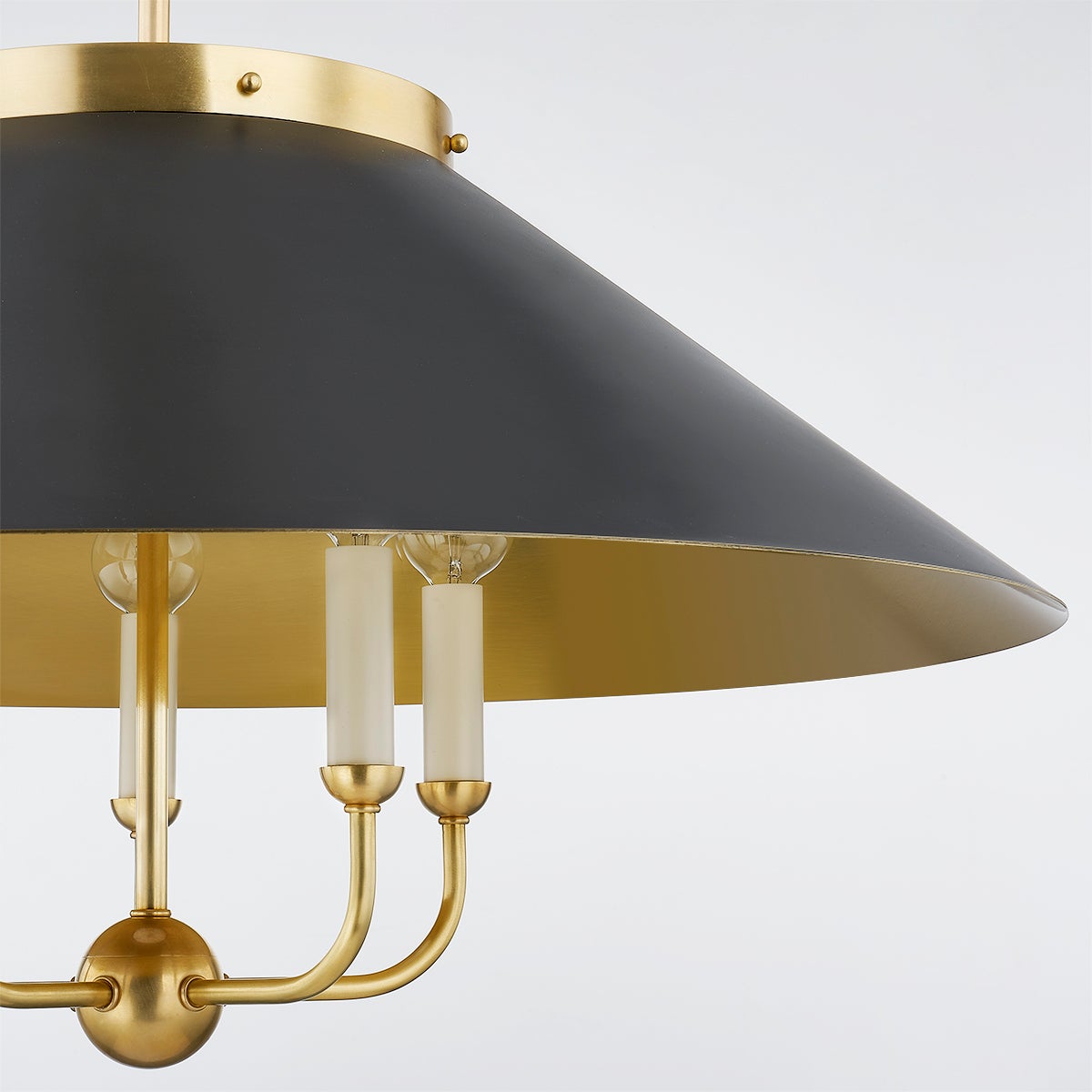 What began as a chandelier is now an entire family of Clivedon fixtures. Featuring sharp tapered shades and heritage-inspired details, these are the new elevated basics for the modern home. With Aged Brass and either Soft Studio Green or Soft Crimson finish options, each shade is metal on the inside and painted on the outside. Available as a sconce with a gooseneck, a pendant in two sizes, and a 5-light chandelier, Clivedon is designed to suit a variety of room sizes and styles.