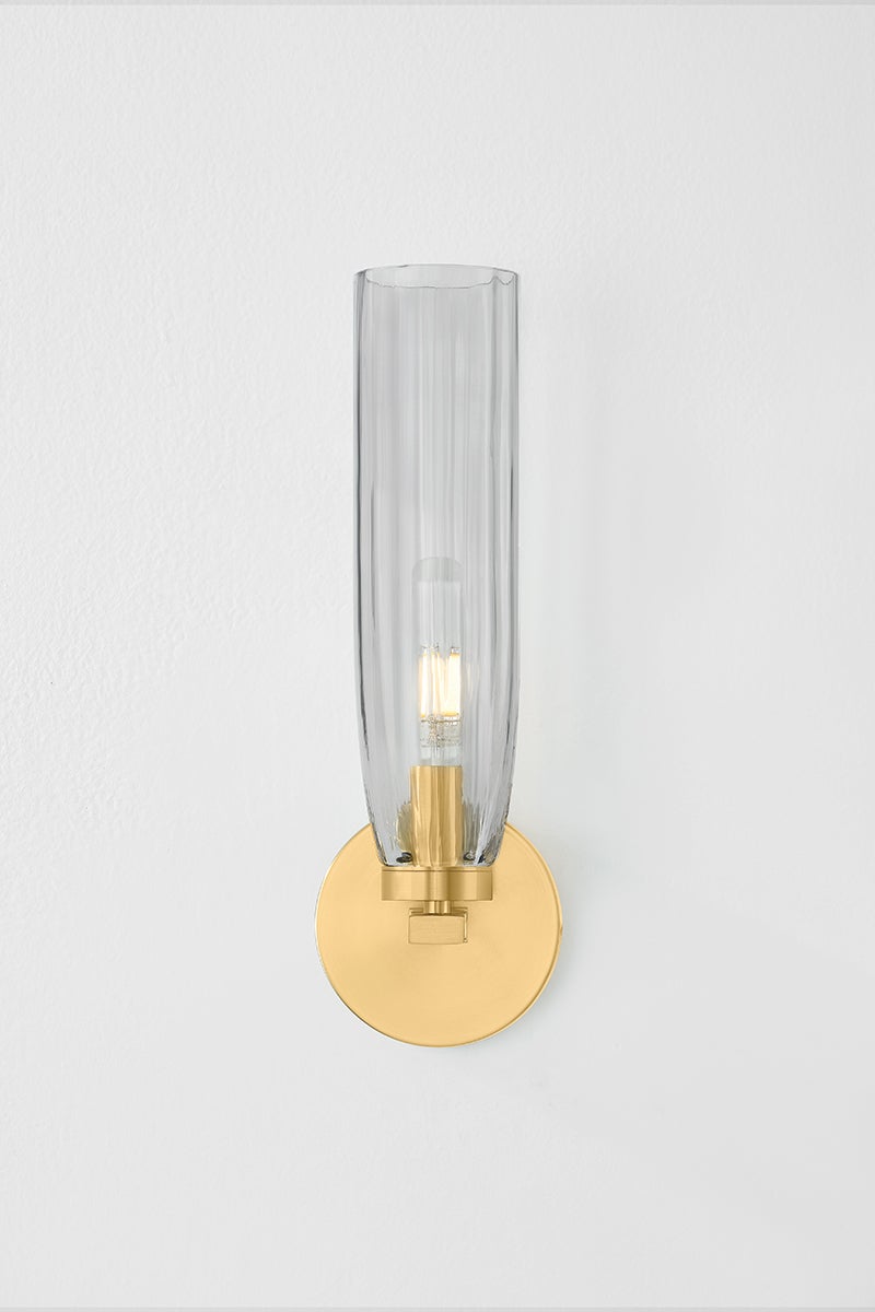 The Harpswell family strikes a thoughtful balance between architectural and organic form language. The softly scalloped, elongated smoke glass shades emit an ambient glow in both the chandelier and sconce formats. As a chandelier, Harpswell features a fluid geometric structure that branches outwards. The Aged Brass finish on the frame enhances the subtle tones of the glass, adding a vintage feel to this inviting fixture.