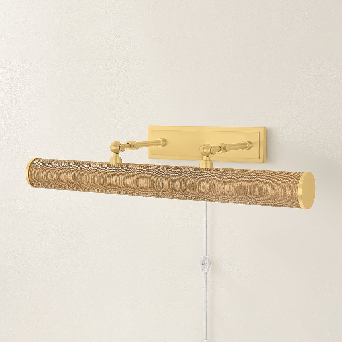 Whether you want to bring more attention to artwork or highlight a wall shelf of your favorite things, Holly is up to the task. This plug-in picture light now comes in an Aged Brass or Natural Grasscloth finish to create a more traditional or distinctive look. Available in three sizes, Holly’s style-forward design and versatility make it perfect for any space needing focused light.