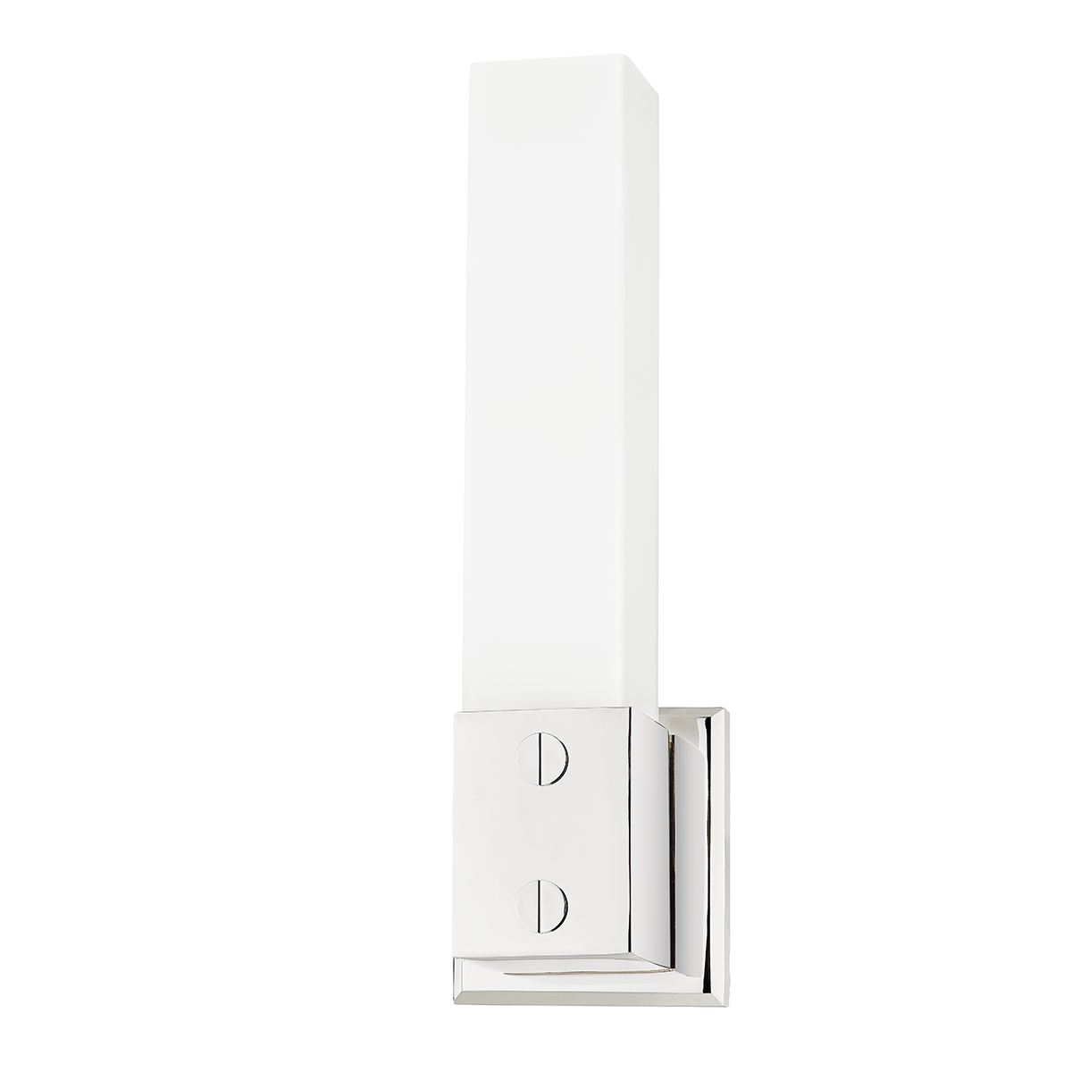 Jonah is the epitome of soft industrial design. The clean lines and defined shape of the sconce body are softened by the acid-etched glass and the beautiful jewelry-inspired hardware on the holder. The coordinating square backplate adds to this stylish sconce's fresh feel. Choose from a one- or two-light option in patina brass or polished nickel.