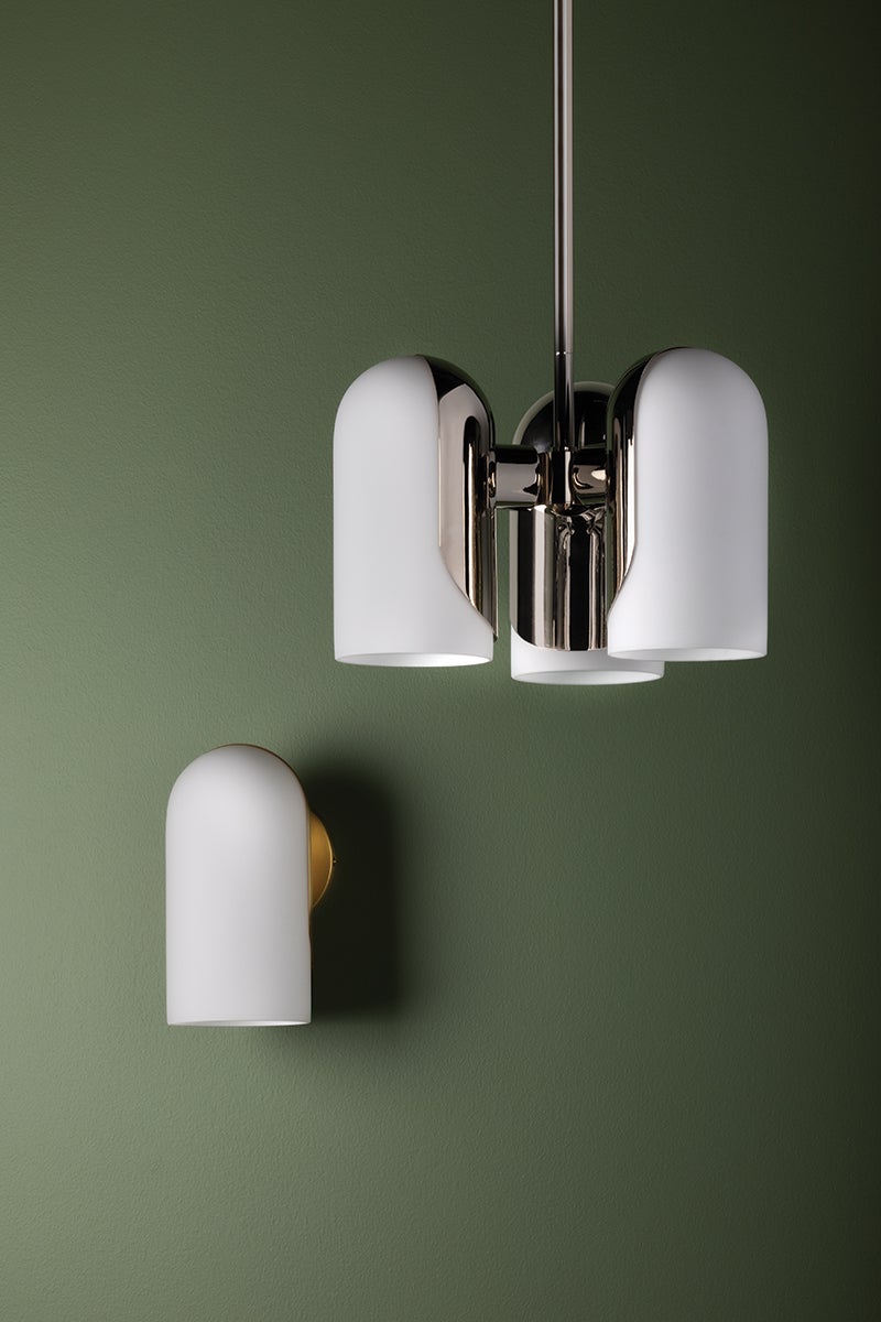 Don't gloss over Mabel—she's one to watch. Between the opal glass shade and polished metal plate, she's simply divine. The wall sconce version is perfect for a vanity while the chandelier would elevate a kitchen table setting.