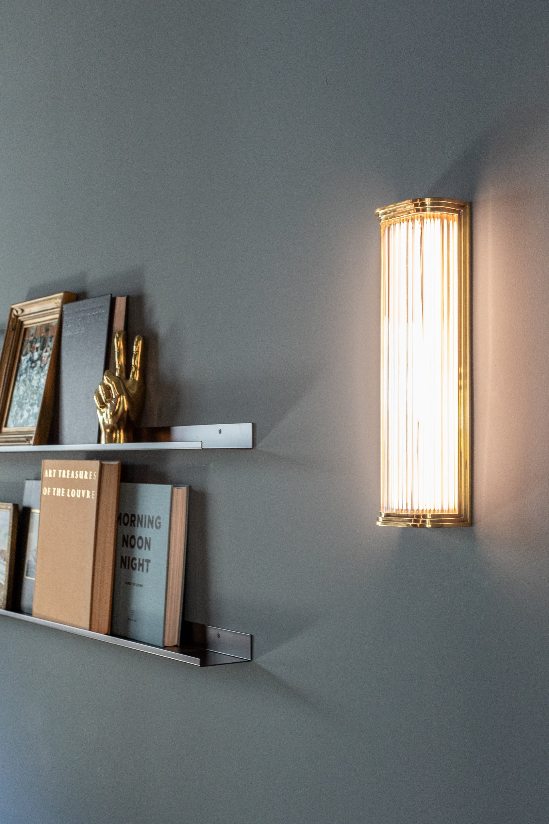 Newburgh gives new life to the classic glass rod sconce. A soft rectangular metal frame with stepped detailing holds clear glass rods that make up the shade of this art deco-influenced design. Available in two sizes and two finishes, Newburgh would work wonderfully in a bath or home theater setting.
