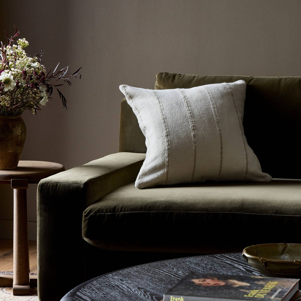 Textured cords in a monochromatic hue create the versatile stripes on this linen-cotton pillow, featuring border stitching plus a hidden zipper for a seamless look.