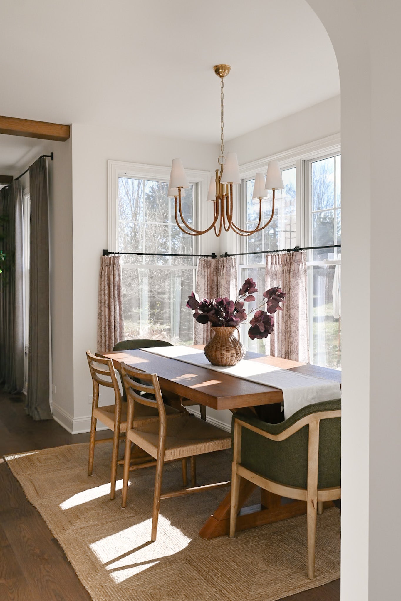 The decorative design of the Ripley sconce marries thoughtful geometry with unexpected materials. Finished in Aged Brass, the frame is accented with rattan wrapping, adding an organic touch to the looping J-shape. A conical white linen shade balances the curves of the silhouette while providing a soft, inviting light diffusion.