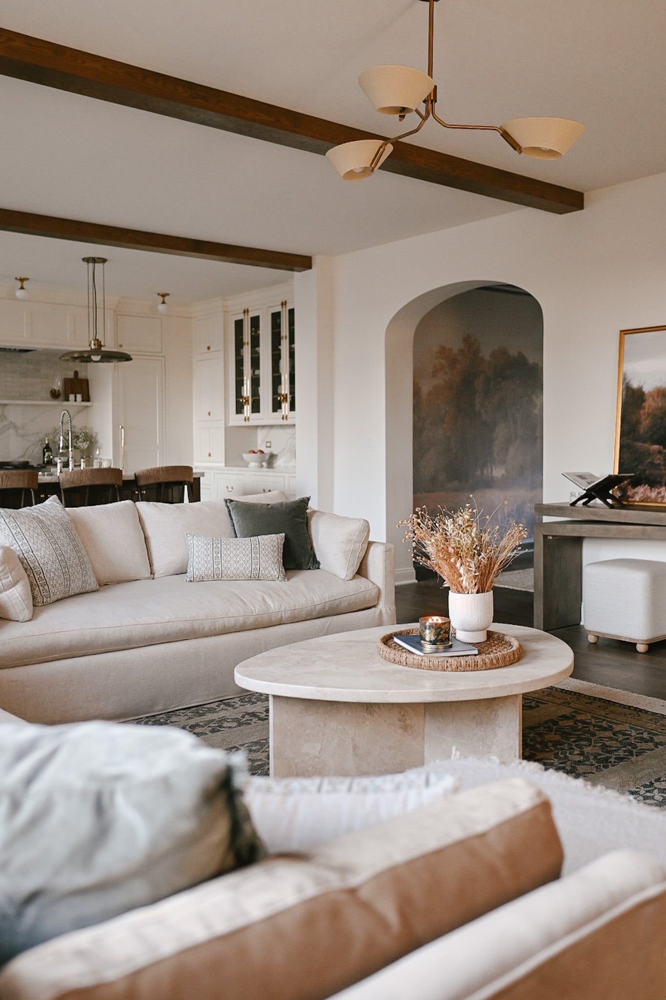 Sacramento makes a bold statement while keeping a low profile. Simple metal shades are mounted at the end of long, sweeping arms creating a design that is visually appealing without taking up a lot of space. With shades that are open at both ends, the wider opening at the top allows light to spread freely above while the narrower bottom opening funnels more direct light downward. Patina brass combines with either a soft black or soft sand finish to give the fixture a natural beauty.
