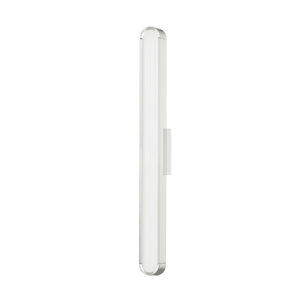 Subtle details take this streamlined LED fixture beyond the bathroom. A ribbed glass front panel, forged brass detail at the ends, beveled edges, a small backplate and an overall sleek, sophisticated look make Starkey ideal for almost any room in the home. Starkey can be mounted horizontally or vertically, adding to its versatility. Available in three sizes and two finishes.