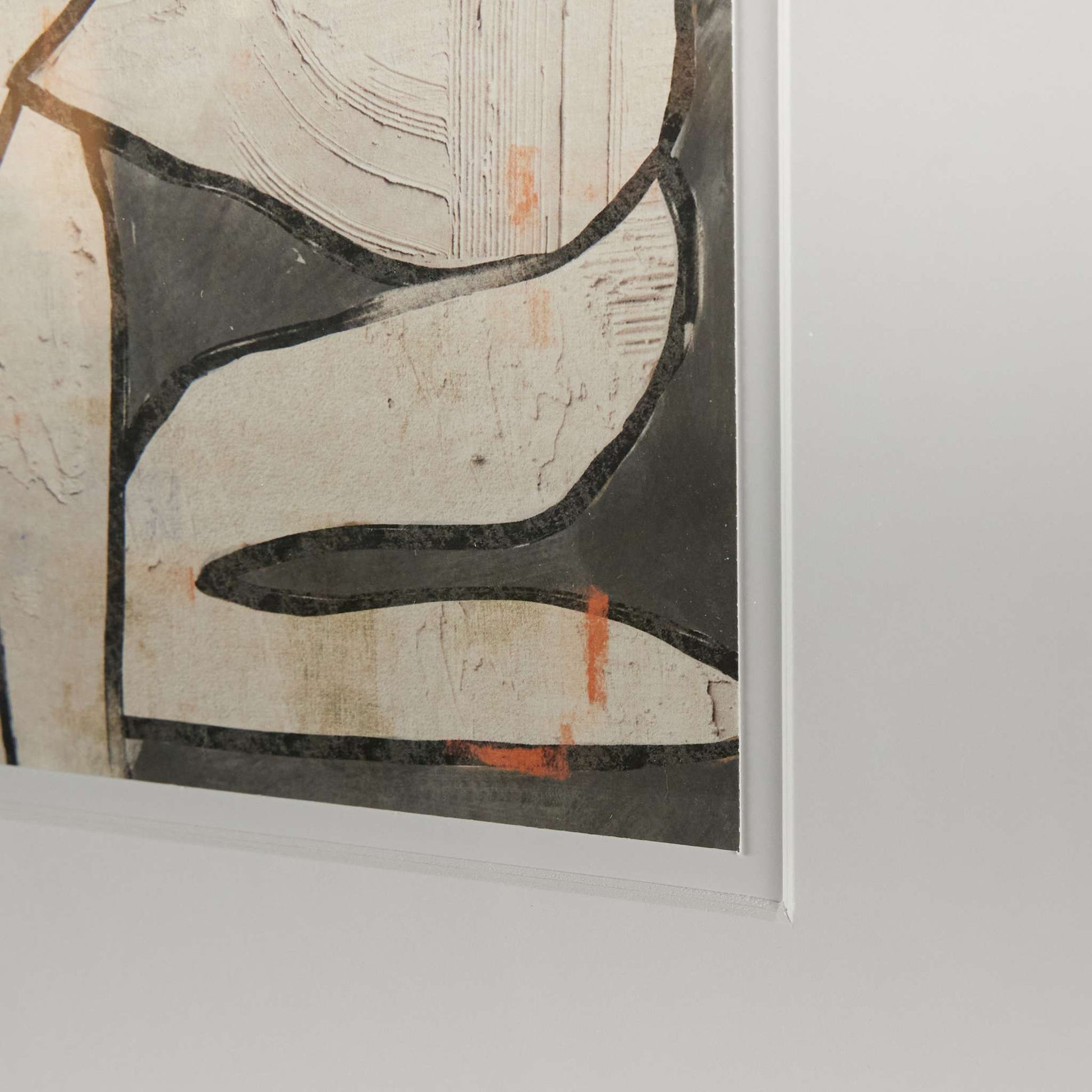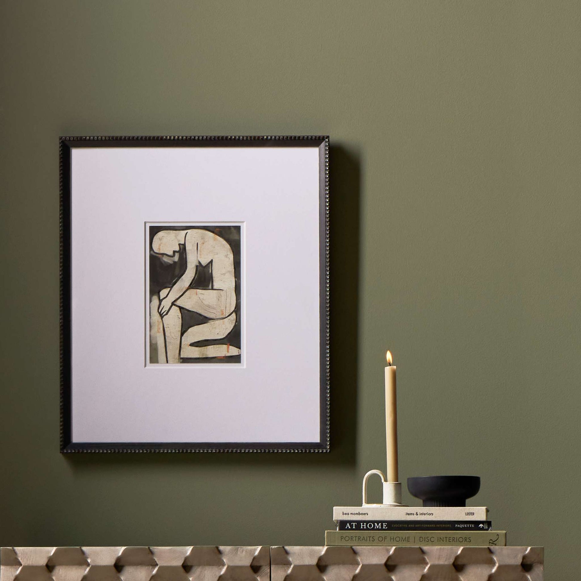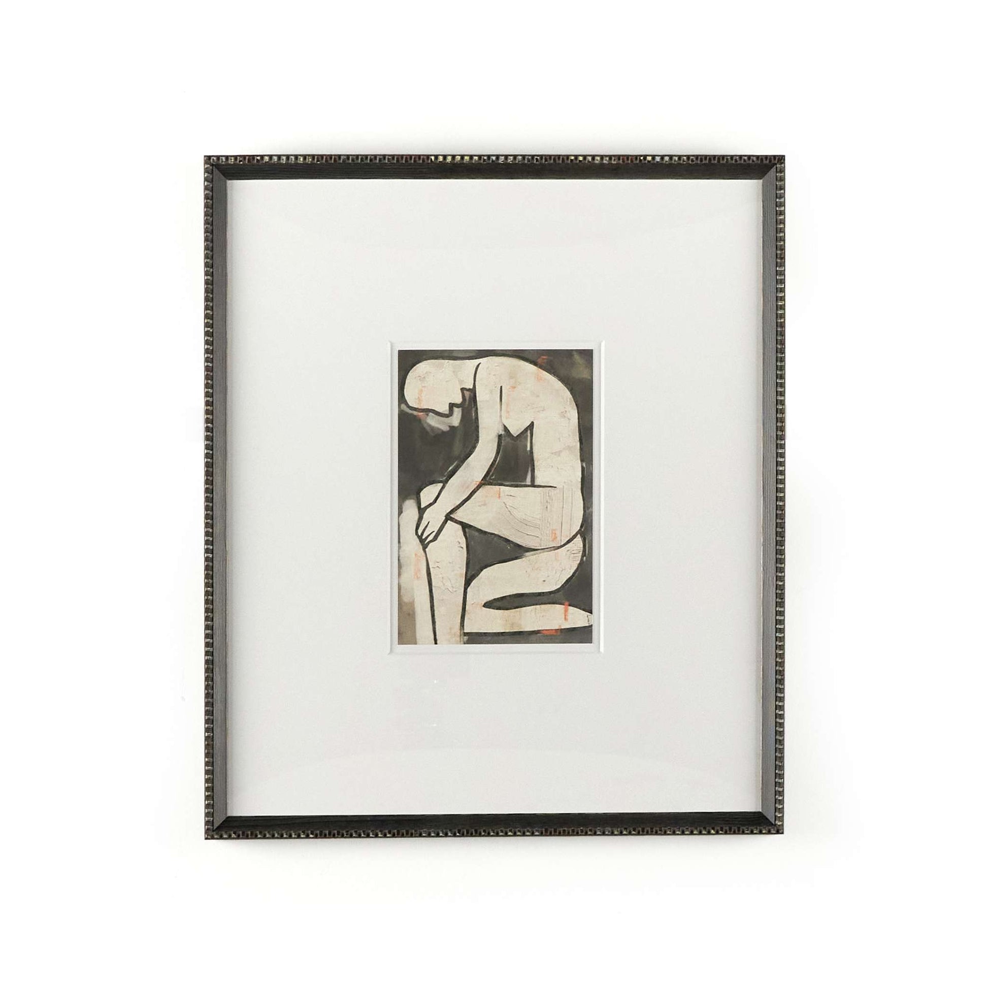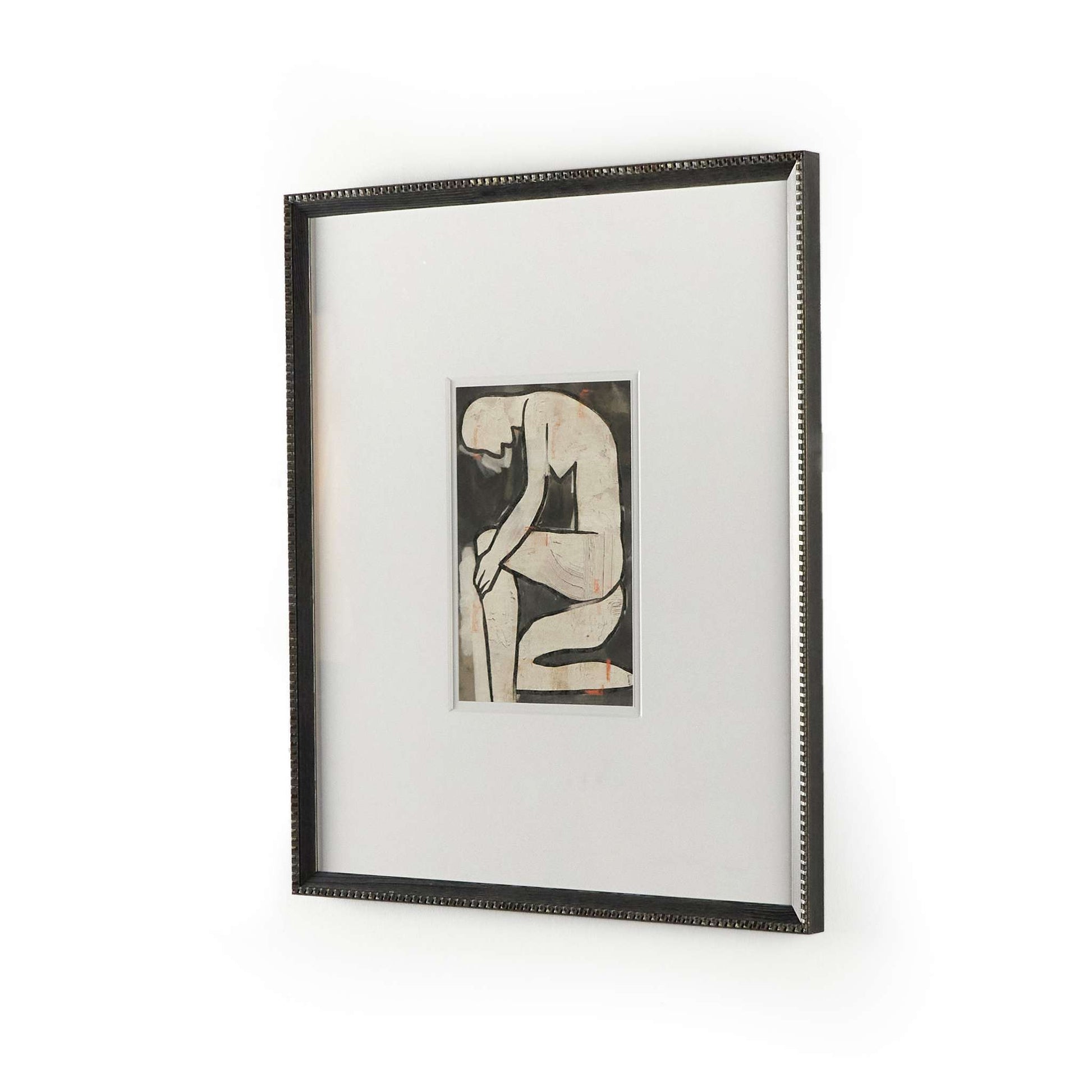 An abstract figural capsule, reminiscent of traditional block printmaking methods and accented by a textural frame, from Bangkok-based art house Coup D'Esprit. Finished within a decorative Brimfield black frame of naturally distressed painted pine. This item is made to order in Austin, Texas and will be ready to ship in 2-3 weeks.