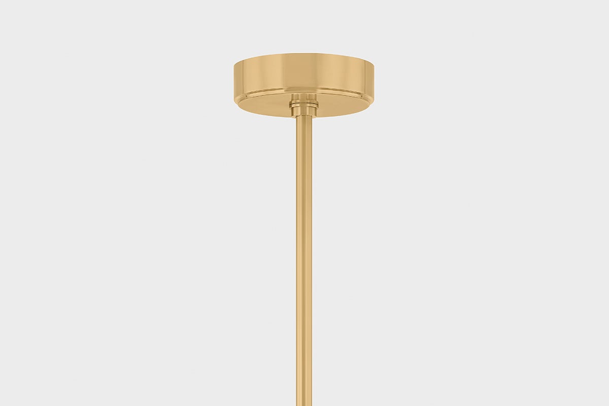Bold and architectural, the Strasbourg family gives Art Deco style a modern twist. Available in two sizes, the chandelier features a fanned silhouette that forms a dynamic, artistic statement overhead. Finished in Vintage Brass, each arm is capped on both ends by a cast-seeded glass optic, creating an even spread of light that extends in all directions. The sconce shares the same edgy design language in a more compact, restrained form.
