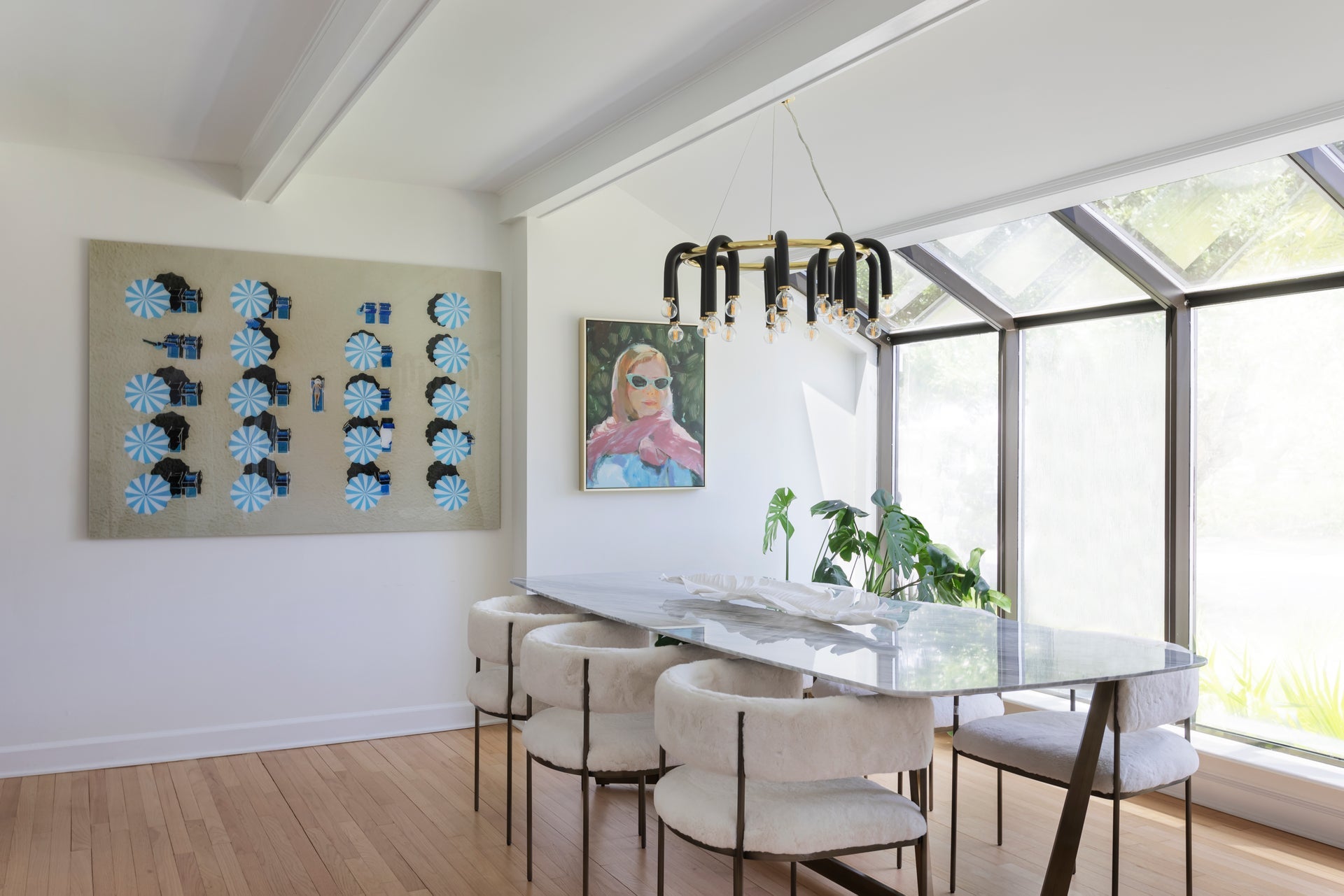 Whimsical for the win. A playful take on modern design, Whit features a sweeping black metal tube draped over aged brass or polished nickel accents. The uneven lines create visual interest and allow light to shine at slightly different heights. Choose from a pendant, chandelier, linear, floor lamp or wall sconce that can be mounted to provide either uplight or downlight.
